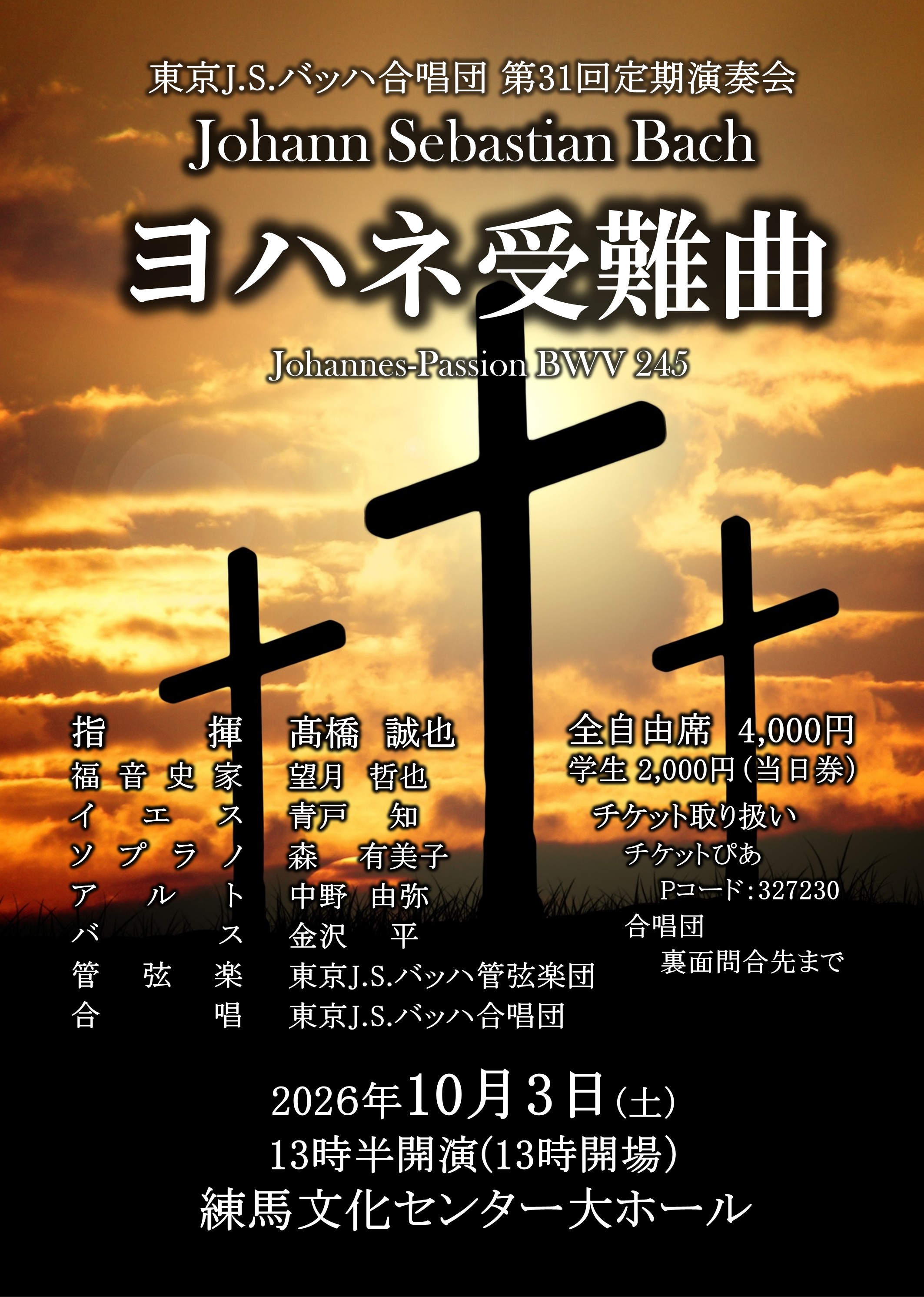 1982年に現指揮者髙橋誠也によって創立された東京J.S.合唱団は、バッハの四大宗教曲、