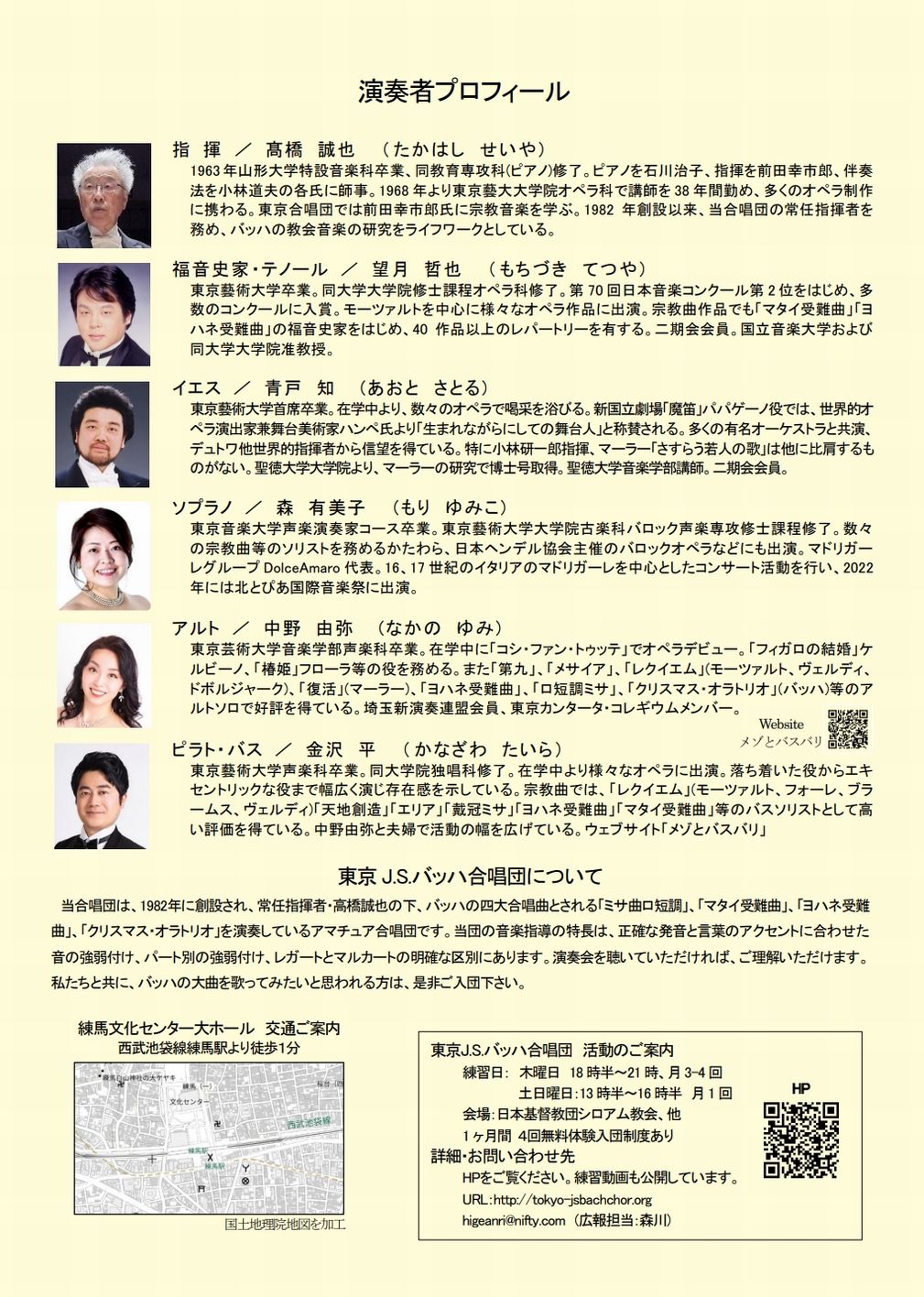 「ミサ曲ロ短調」、「マタイ受難曲」、「ヨハネ受難曲」、「クリスマスオラトリオ」を演奏する団体です。